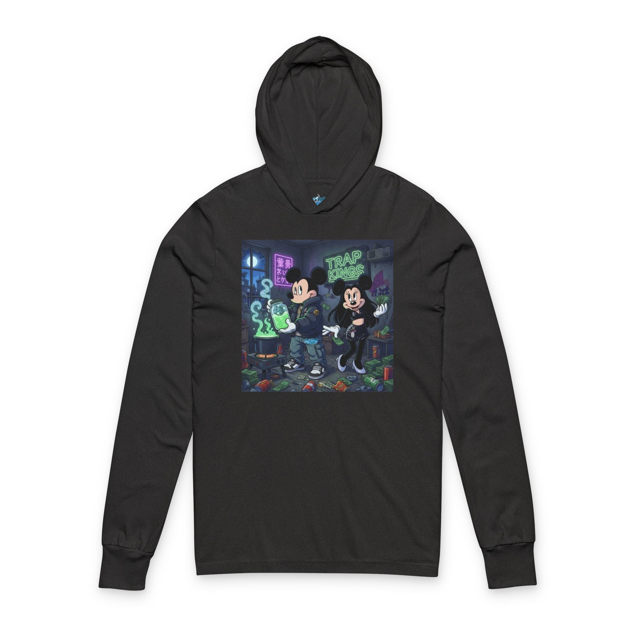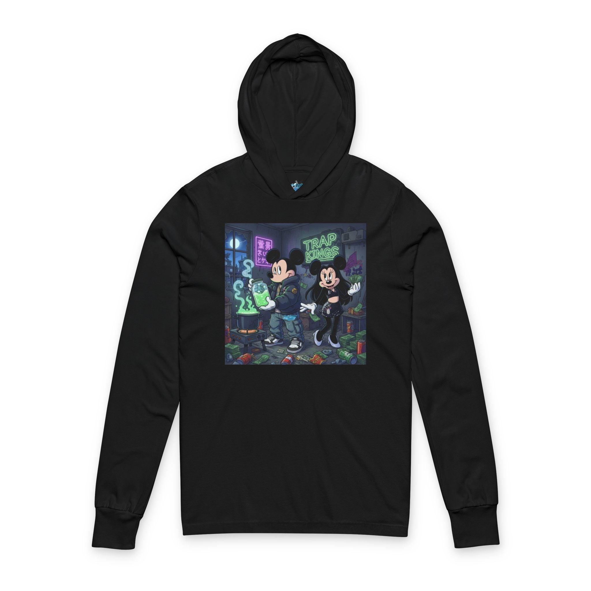 Mickey and Minnie Mouse Trap Hoodie for Casual Vibes, Unisex Long Sleeve Tee, Trendy Streetwear, Gift for Him/Her, Perfect for Festivals & Birthdays
